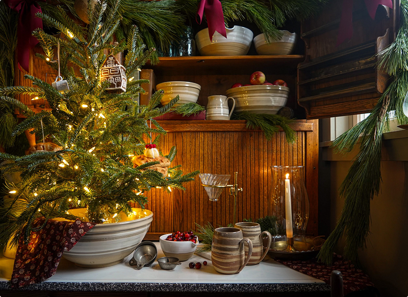Fruit is another fun touch to add a bit of holiday cheer to the kitchen. Channeling colonial apples and tangerines with cloves is a simple showstopper.