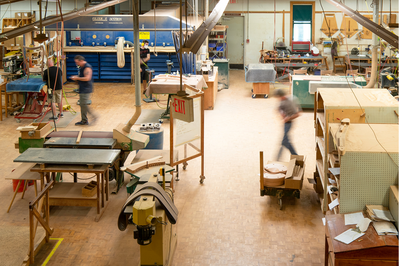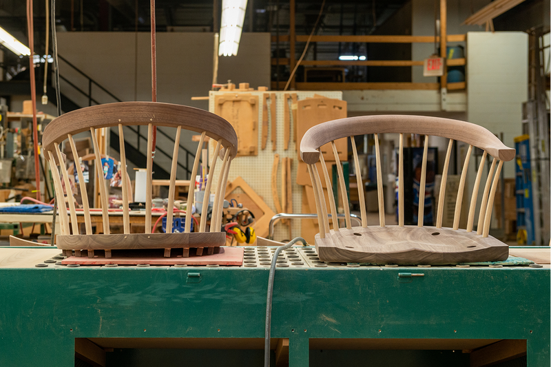 The workshop of Thos. Moser is nestled in Auburn, Maine, just north of Portland, where the iconic furniture makers have been handcrafting pieces for over five decades. Thomas and his wife, Mary, founded the business in 1972. Tom served as designer and maker while Mary handled sales and finances.
