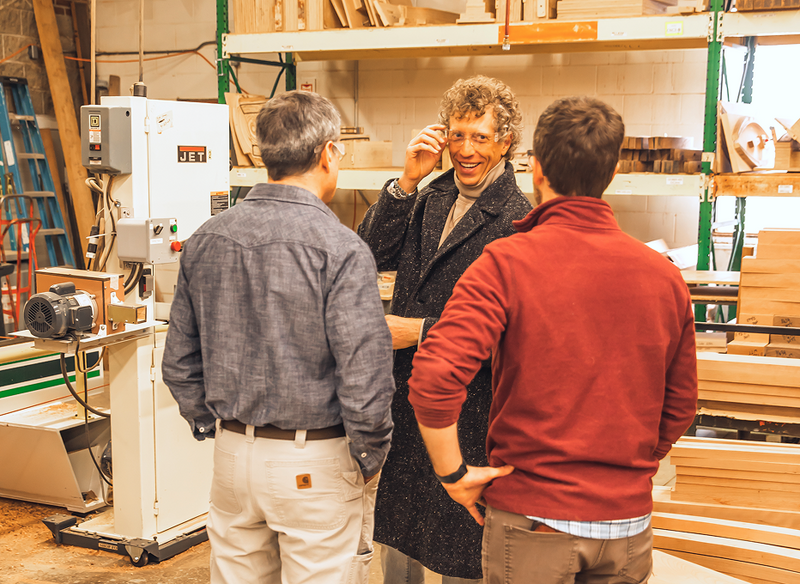 What struck him most was the sheer volume of highly skilled work, the innovative techniques and problem-solving, and the commitment to handwork. The workshop has developed ingenious approaches to their craft, particularly in complex joinery like intricate chair arms. The Mosers developed unique ways to systematize complicated builds while preserving as much benchwork and handcraft as possible. This balance of innovation and tradition proved deeply inspirational for James.