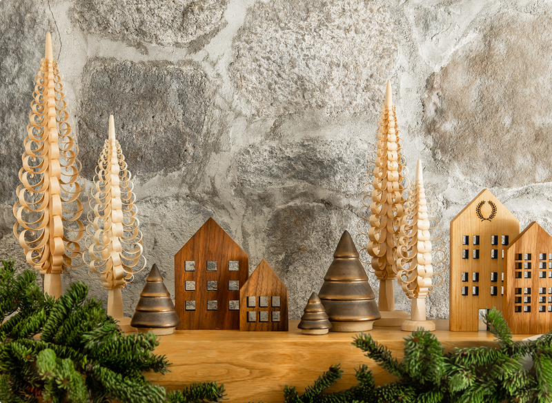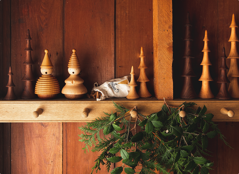 Available in dark walnut and light beech woods, the new Fir silhouettes are carved by hand and bring a quiet, natural beauty to your holiday home. They are inspired by alpine firs and feature soft, tapered lines.