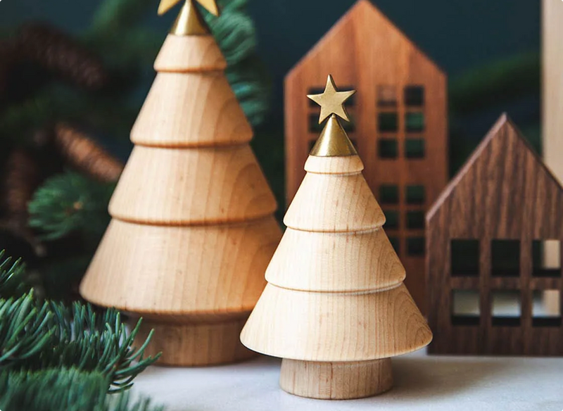 By popular demand, our Tree Ornaments are now available in both individuals and as a set! Every tree is carved from sustainably harvested woods. The turnings highlight the natural grain and unique character of the woods. Finished with a handmade brass hook, these ornaments are simple, timeless accents you’ll reach for year after year.