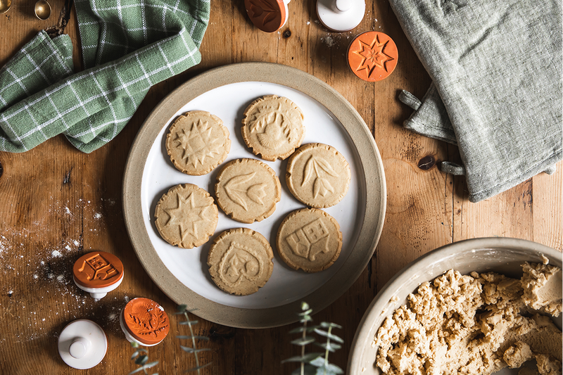 Our cinnamon shortbread recipe is the perfect pairing with these stamps. It's inspired by the warming ginger molasses cookies James’s mom bakes every year — using spices that make the whole house smell like the holidays.