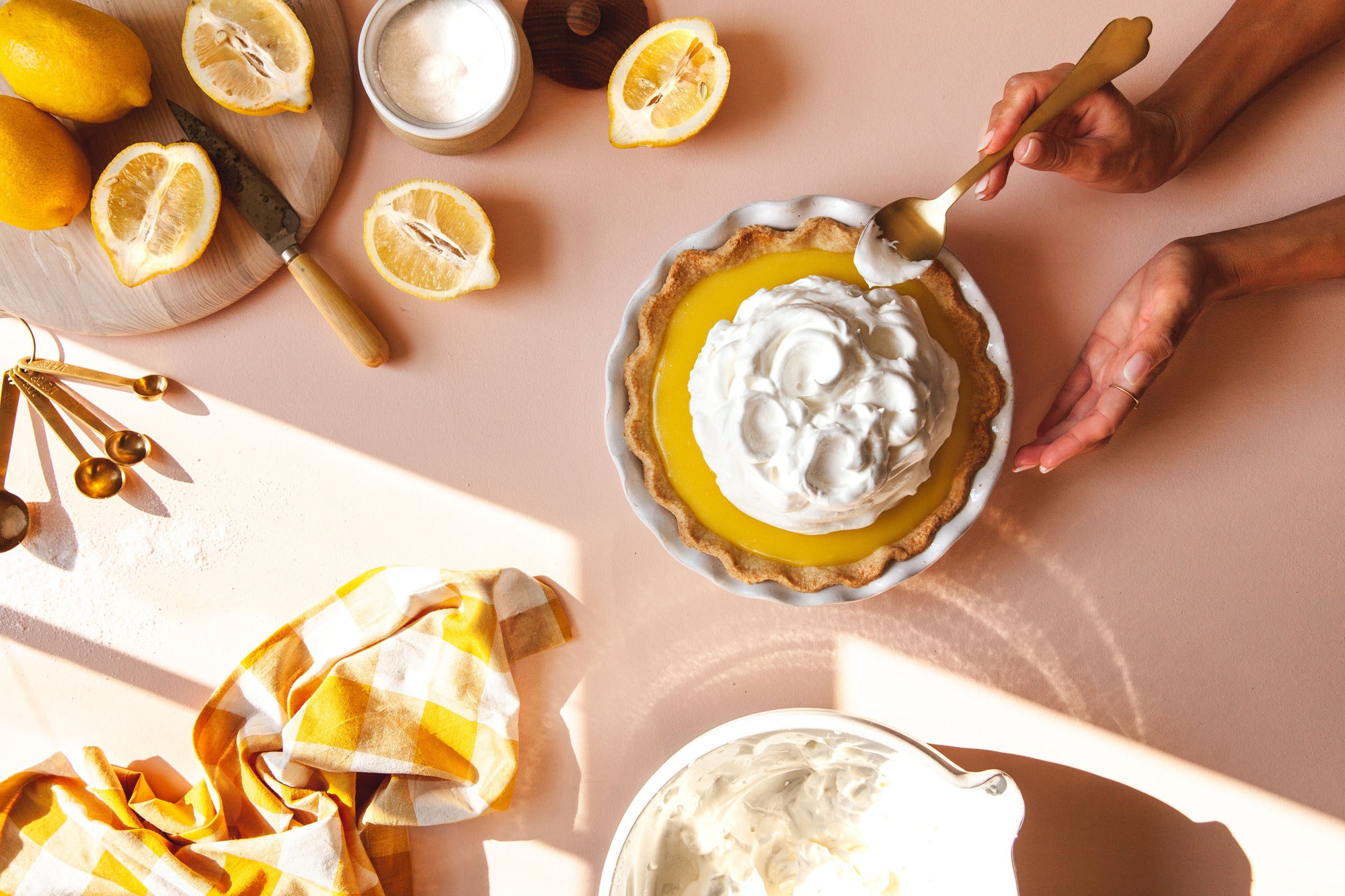 Spread the meringue over the hot lemon filling, sealing the edges to the crust to prevent shrinking. Use a spatula to create swirls. Bake at 350°F for 15–20 minutes until the meringue is golden. Cool completely at room temperature, then chill for at least 2 hours before slicing.