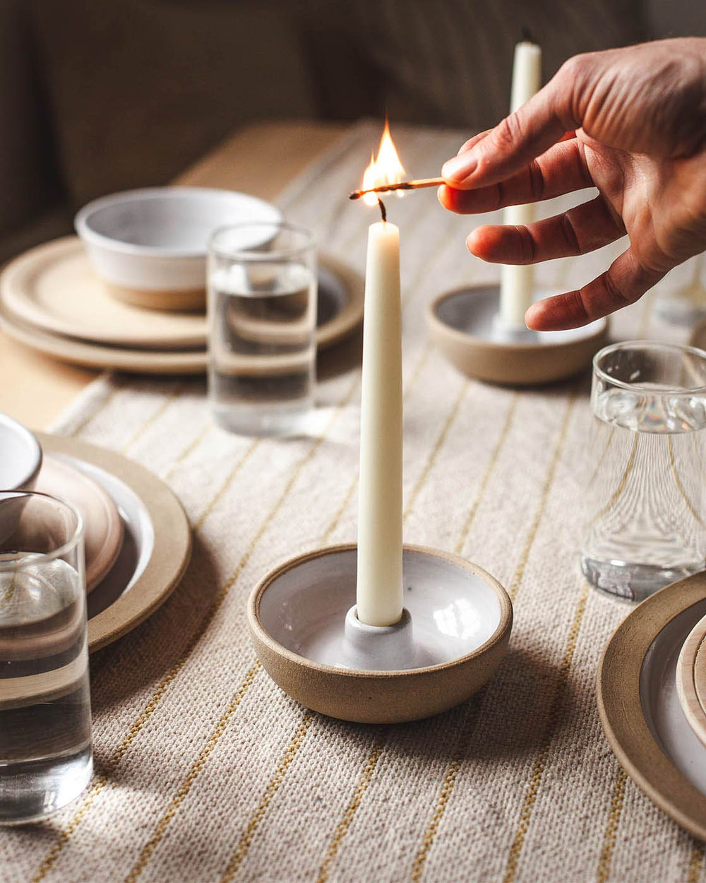 Made from a special blend of wax, these tapers are hand-dipped by a master candle maker and add a touch of understated luxury to any table.