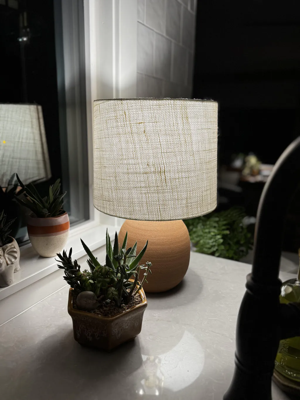 A lovely lamp! Beautiful, organic shape, color, and texture. Just the right size for my kitchen counter.