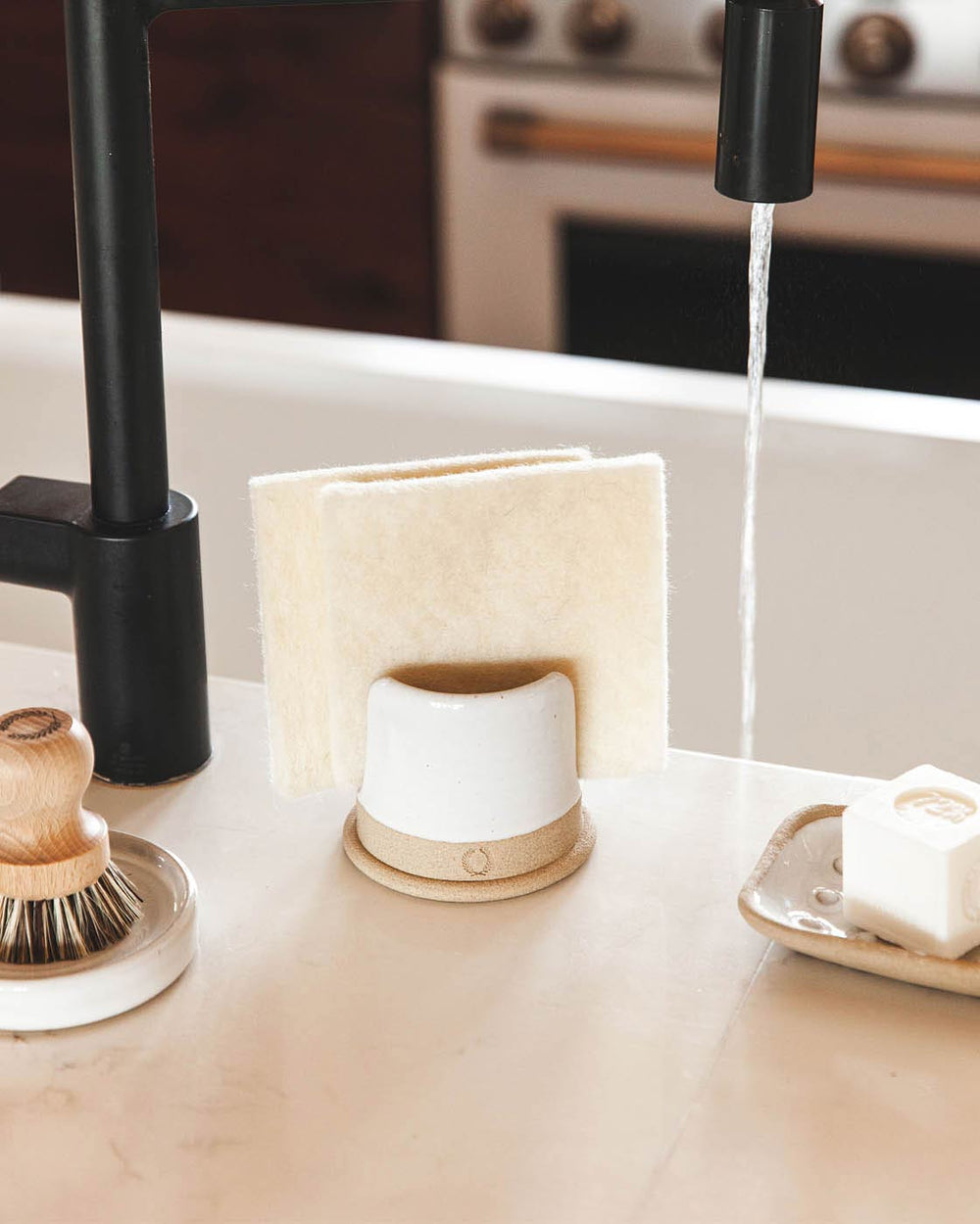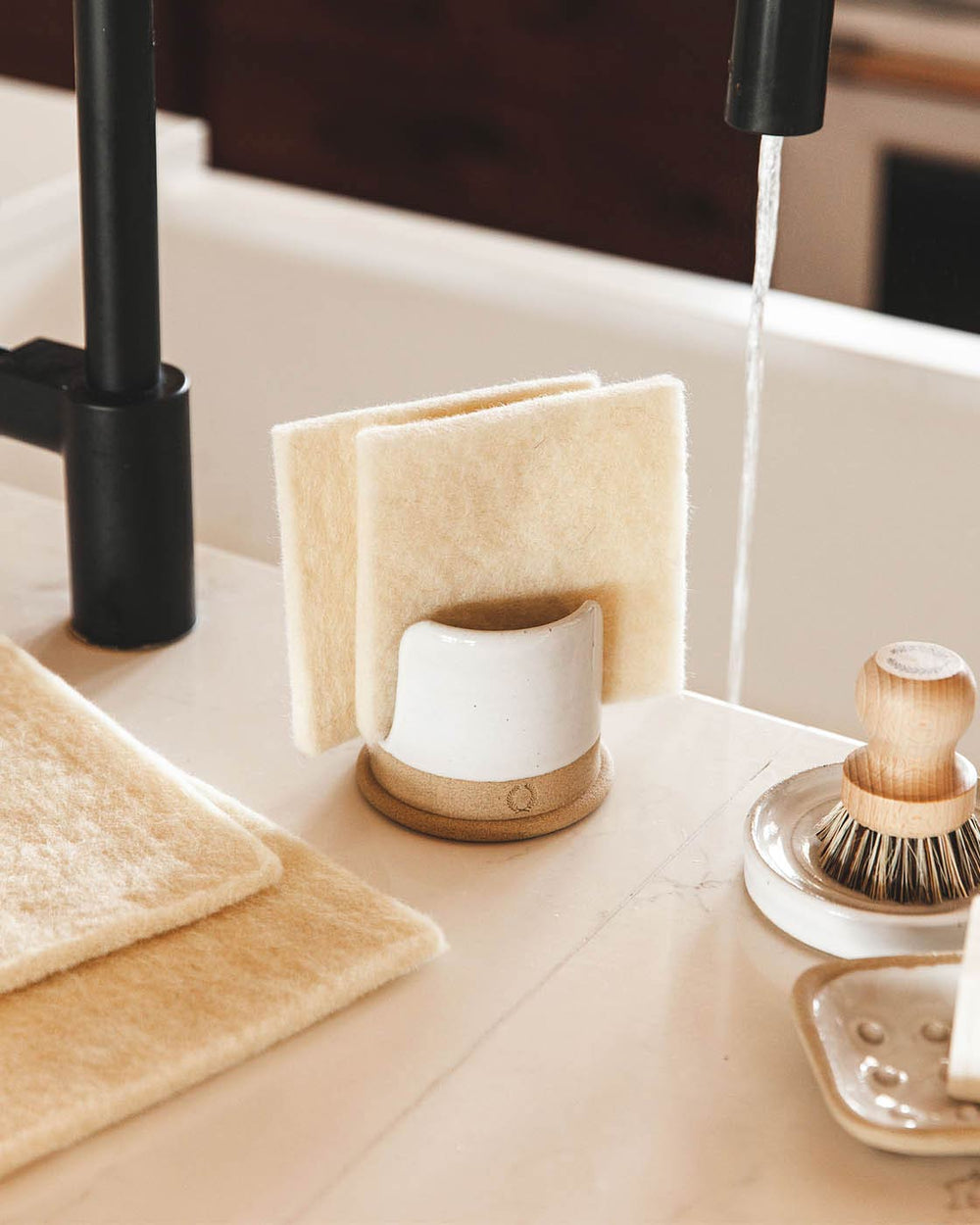 The sponge holder is terrific. I love how sturdy it is with a wider bottom for stability. It is attractive and is a wonderful addition to our kitchen renovation!