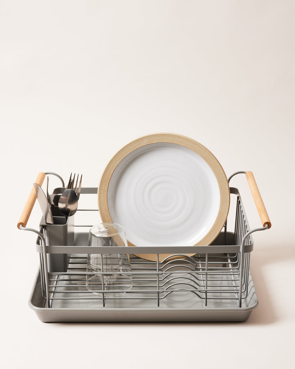 With solid wood handles and a classic design, this dish rack will bring stylish organization to your kitchen. The deep drainage tray will keep water drops off your counters, while the 3 piece design allows for easy cleaning.
