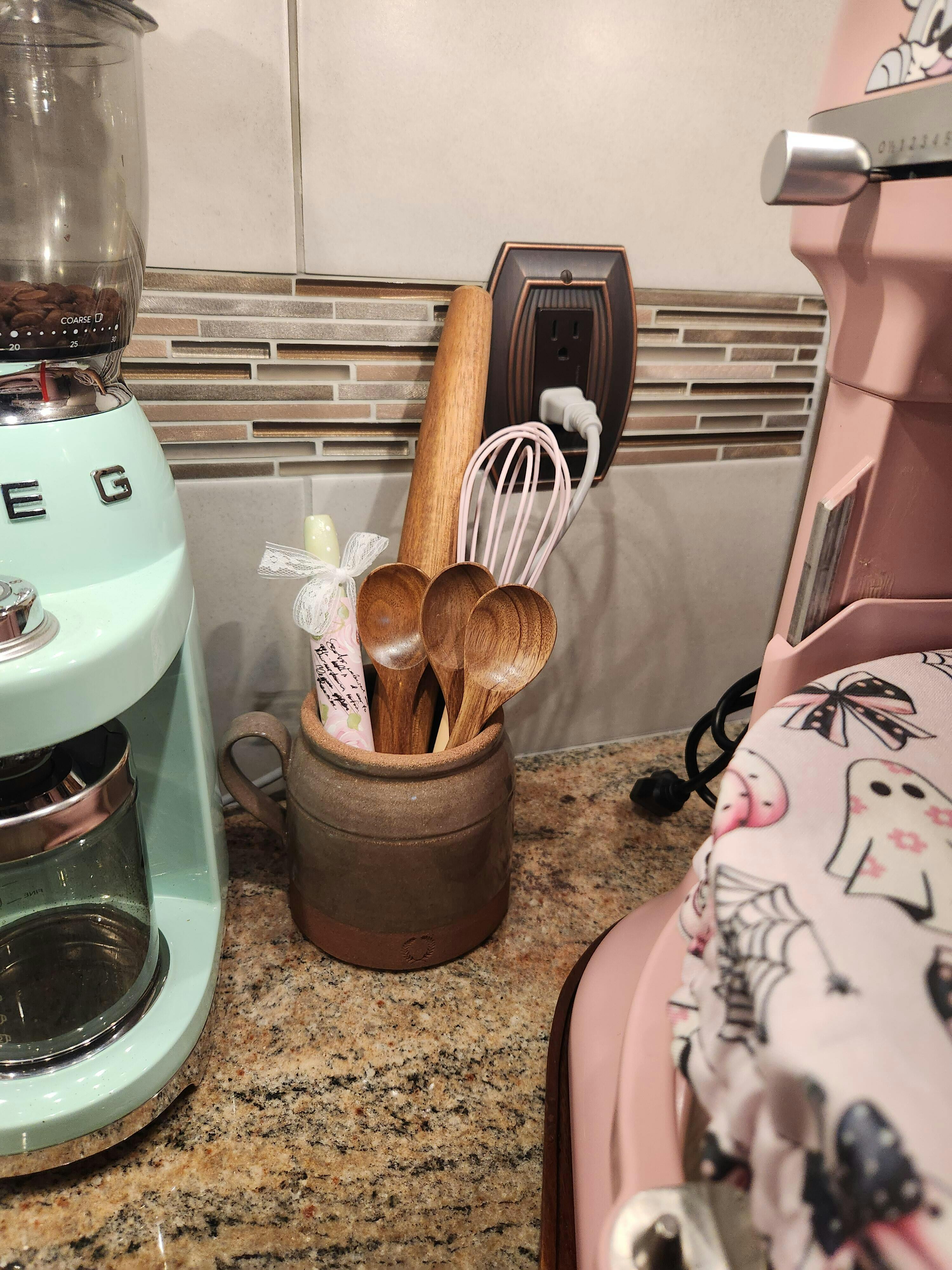 I love the color of the crock for my kitchen. It’s perfect for flowers or utensils or just by itself. Like I went to the French countryside!