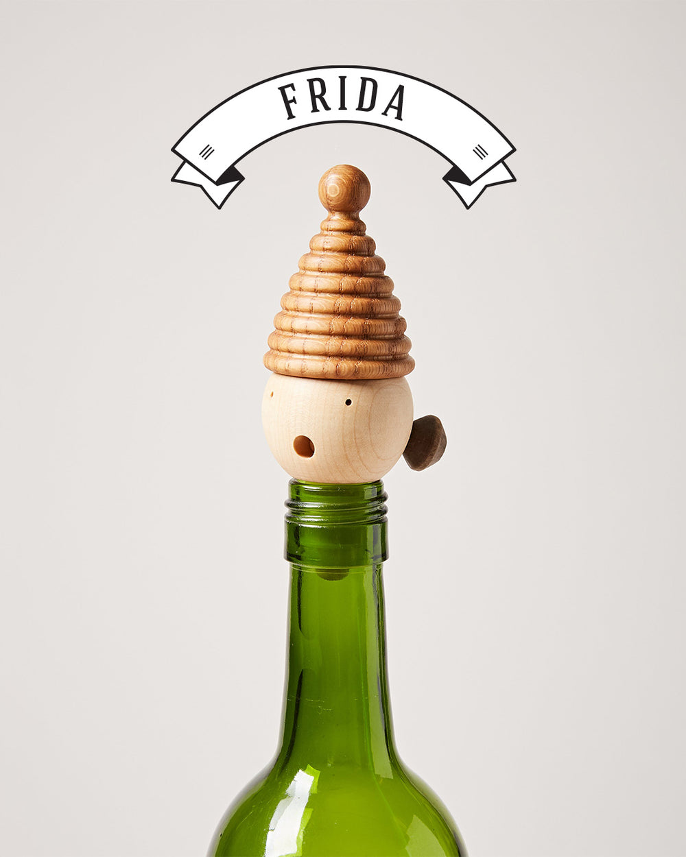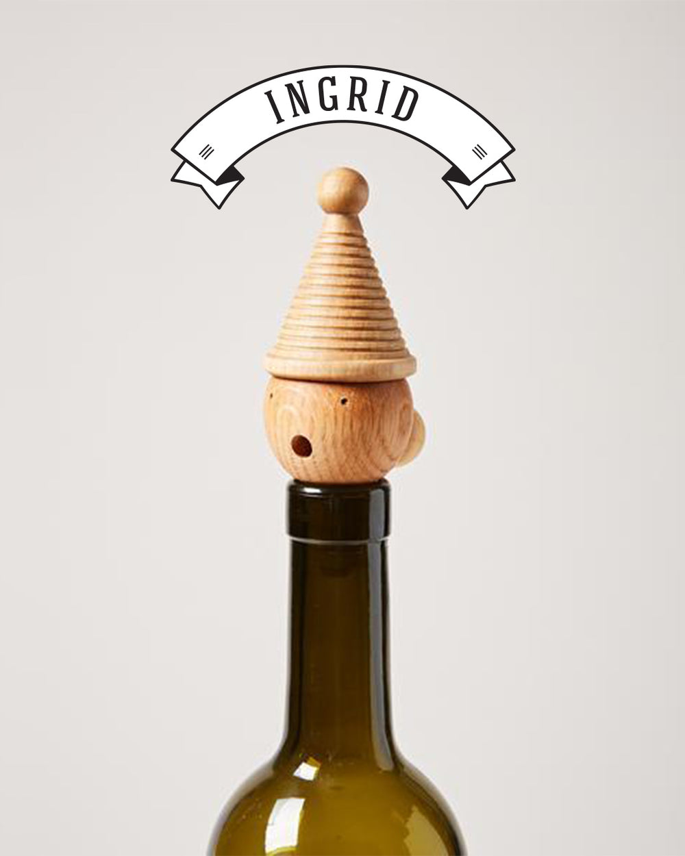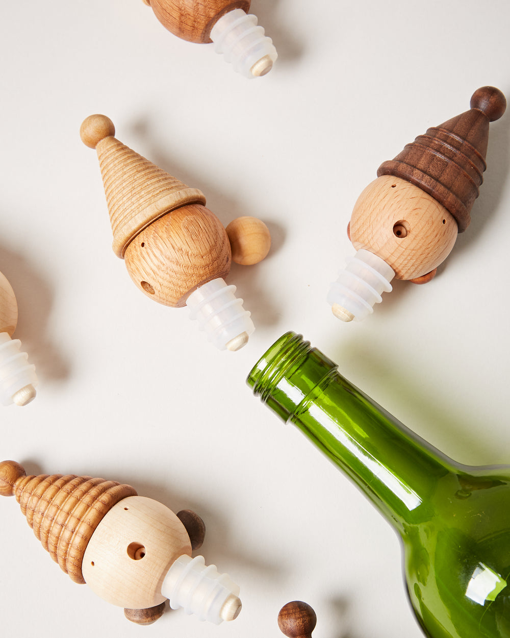 This whimsical wooden treasure seals an opened bottle of wine or liquor perfectly and helps keep in fresh. Each guardian of the grape is artfully lathe turned and crafted from sustainable American hardwoods.