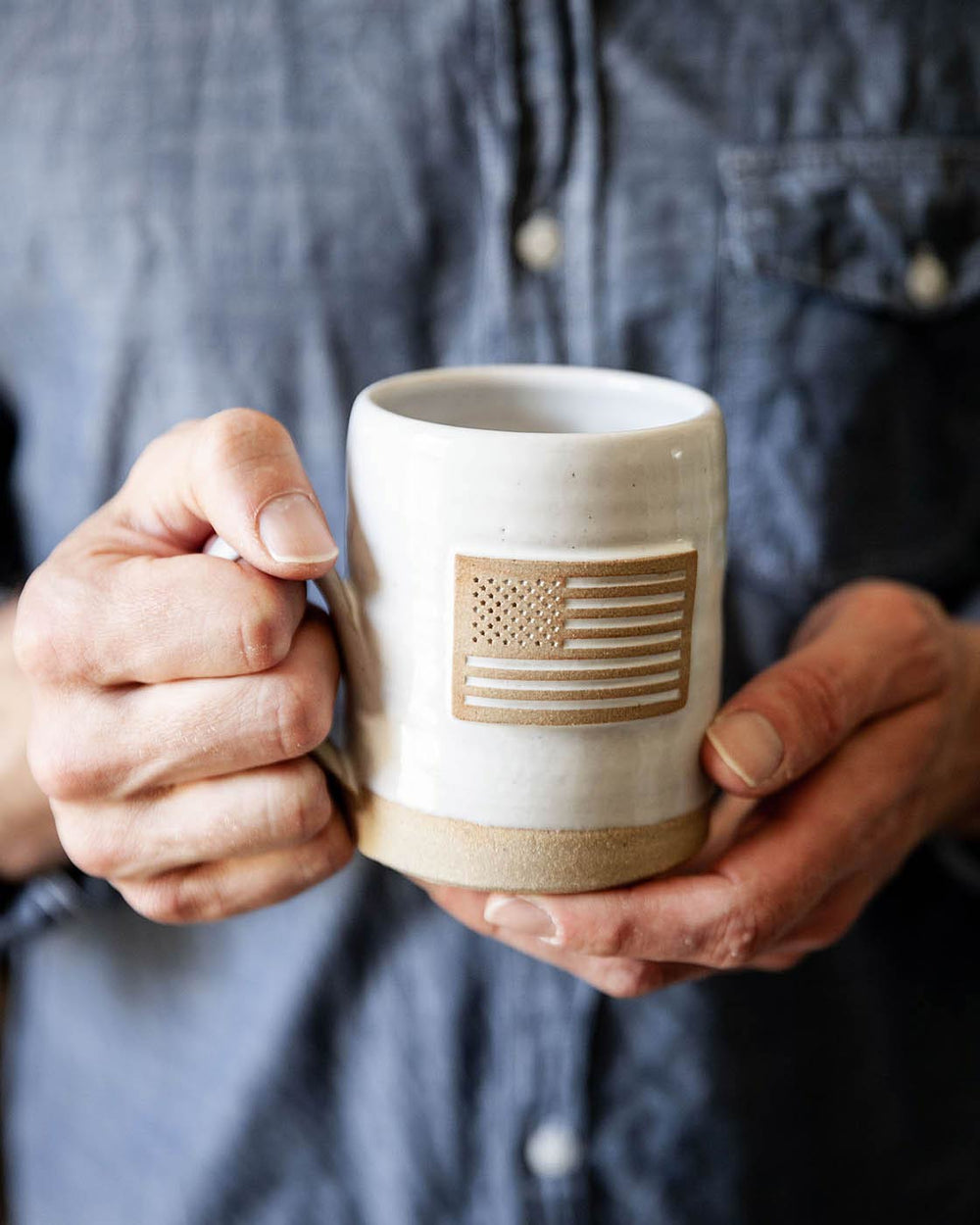 Crafted with purpose and heart, the United Mug features a hand-stamped American flag—an iconic symbol of unity, thoughtfully made to be shared over coffee, conversation, and connection. A portion of proceeds supports the American Red Cross, helping provide relief where it’s needed most. Handmade in Vermont, this one-of-a-kind piece is a small way to give back—and a meaningful addition to your daily ritual.